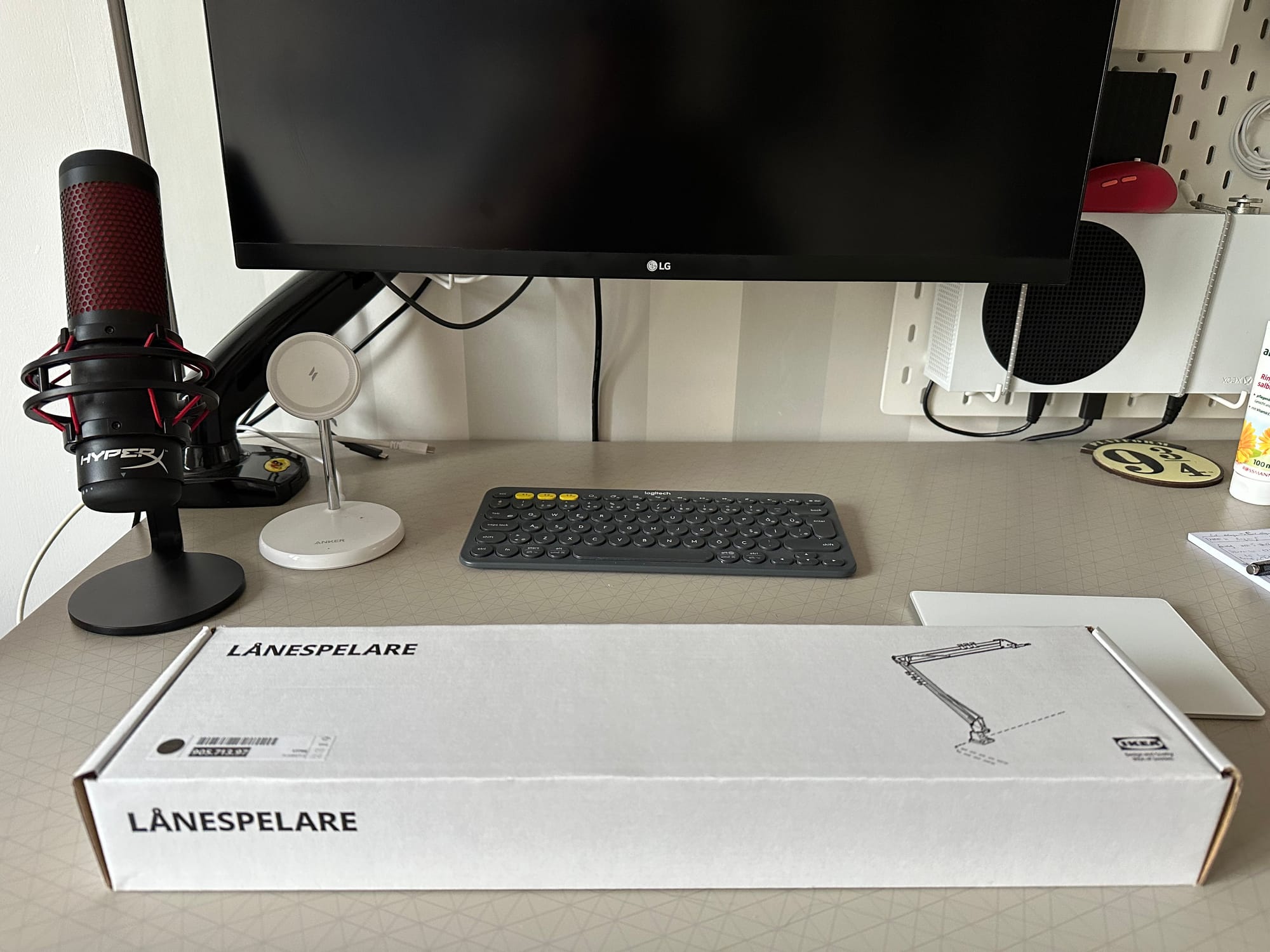 Tabi ihtiyaç duyacağımız şeylerin %99,86'sı gibi bu mikrofon kolu denen kardeşimiz de ülkemiz şartlarında epey pahalı olan bir eşya. Bunun bir nedeni kolun kolayca eğilip bükülürken 400-500 gram kadar bir ağırlığı taşıyacak kadar rijit olması gereği. Hem estetik hem sağlam olsun dediğinizde iyi bir şey bulmak çok kolay değildi. Ta ki geçen gün IKEA'ya gidip bu yazının konusu olan Lanespelare ailesinden satışa sunulan kolla tanışana kadar.