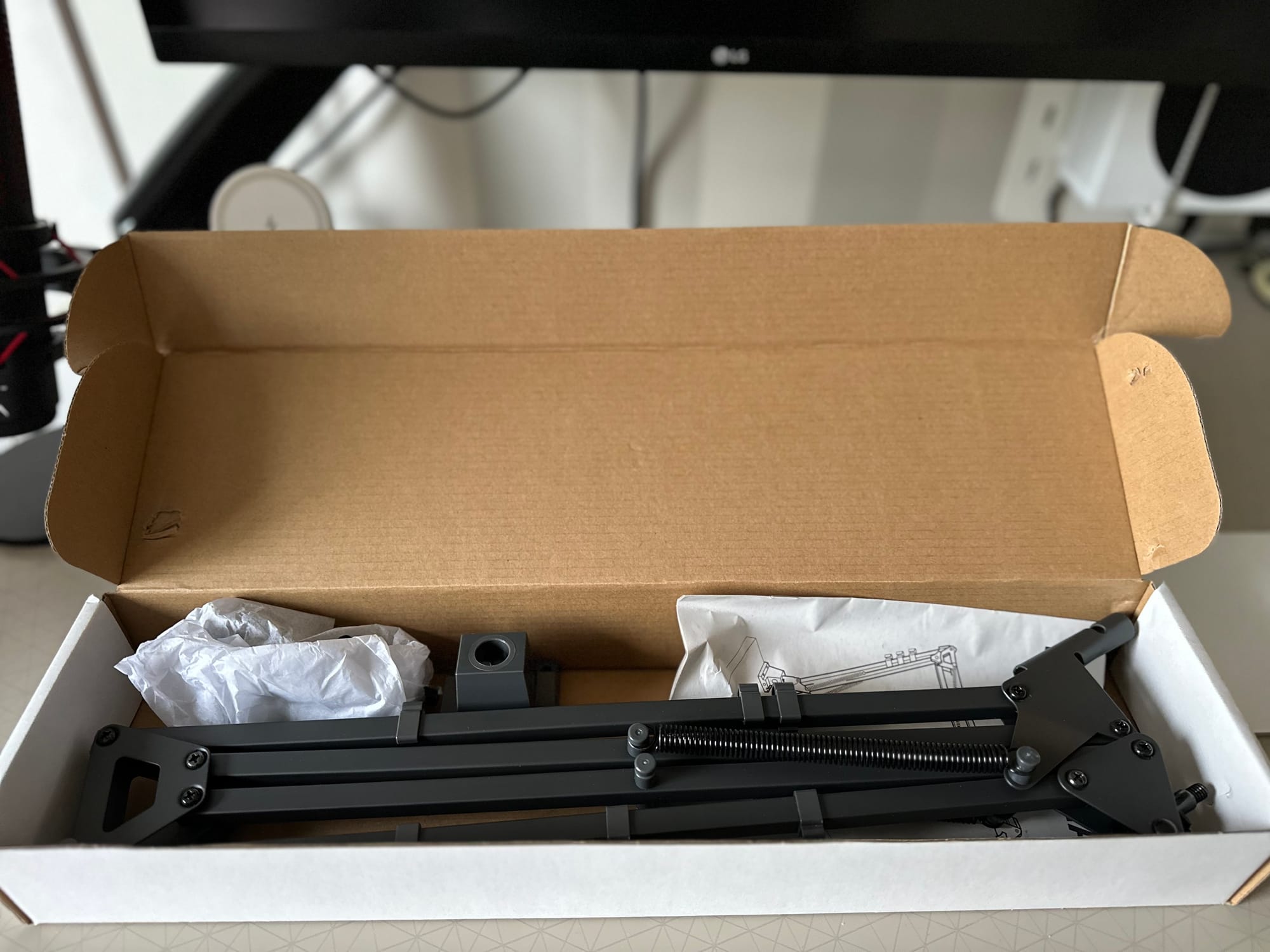 Kolun ayak kısmını zemine ya da duvara vida ile sabitleyebileceğiniz gibi, 6 cm kalınlığa kadar olan masalarınıza da kutunun içinden klips ile tutturabilirsiniz. Ben şahsen ilk aşamada masaya monte ettim ve montaj 1 dakika bile sürmedi.