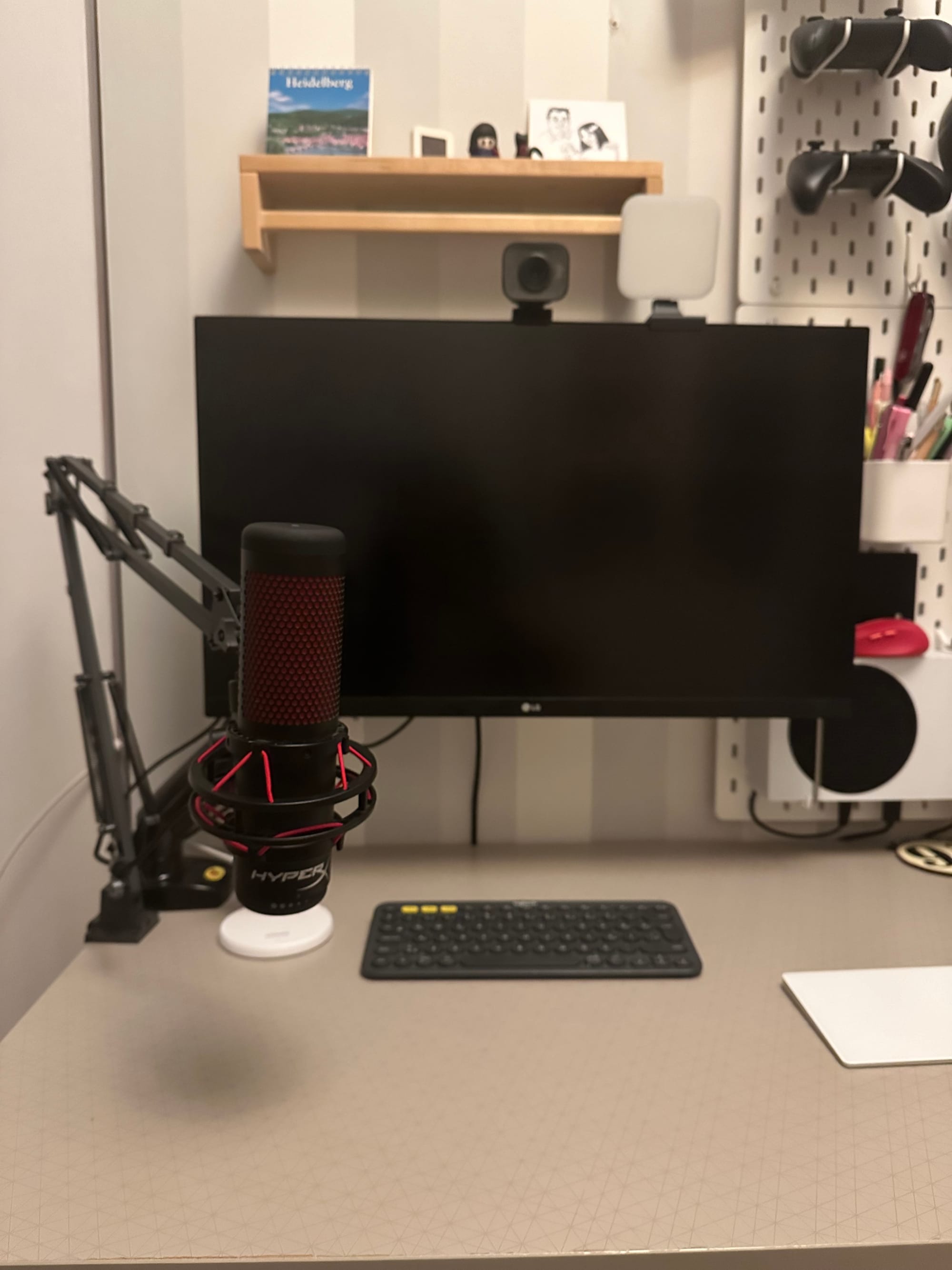 Tabi tüm gün mikrofon böyle durunca görüş açımı kapatıp kapatmadığını merak etmiş olabilirsiniz. Merak etmeseniz de bu soruyu cevaplayayım =). Hayır kapatmıyor çünkü mikrofonu bu şekilde tutmuyorum kullanmadığım zamanlarda. Kolu tamamen kapatıp masadan çevirince epey yer açılıyor ve mikrofon da yer kaplamıyor.